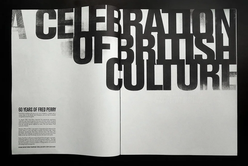 Other works involved designing personal invites, promotional marketing materials such as flyers, poster bombing and a quarterly issued Fred Perry Subculture fanzine.